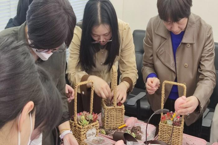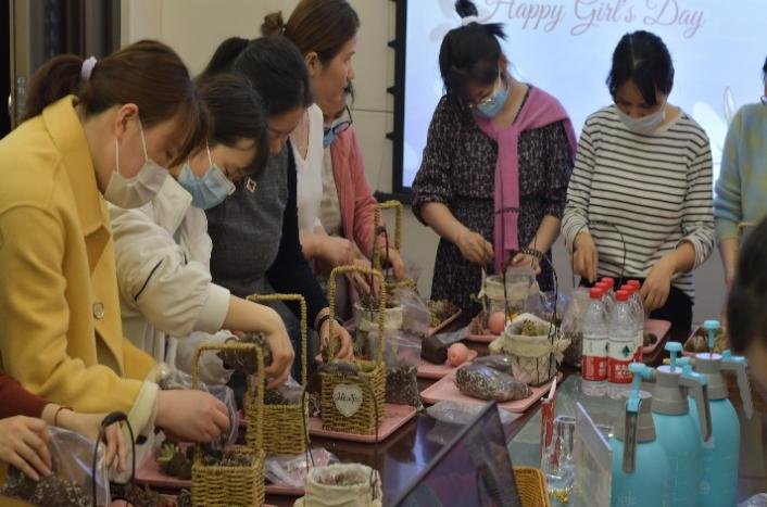 為順利舉辦此次活動,人力行政部定制了活動橫幅并邀請了專業(yè)的多肉種植老師為大家講解示范。3月8日當(dāng)天下午,人力行政部精心布置好會場與多肉種植老師一起等待全體女同胞們進入會場。