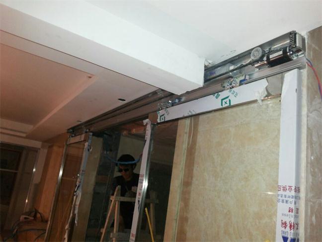 感應探測器探測到有人進(jìn)入時(shí),感應探測器將收集信號,生成脈沖信號,其后脈沖信號傳給主控器,主控器判斷后通知馬達運行,同時(shí)監控馬達轉數,以便通知馬達在一定時(shí)候加力和進(jìn)入慢行運行。馬達得到一定運行電流后做正向運行,將動(dòng)力傳給同步帶,再由同步帶將動(dòng)力傳給吊具系統使門(mén)扇開(kāi)啟;門(mén)扇開(kāi)啟后由控制器作出判斷,如需關(guān)門(mén),通知馬達作反向運動(dòng),關(guān)閉門(mén)扇。