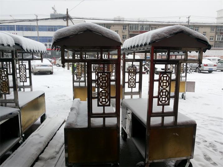 南陽(yáng)市城管局為美化南陽(yáng)小吃街定制不銹鋼推拉車(chē)