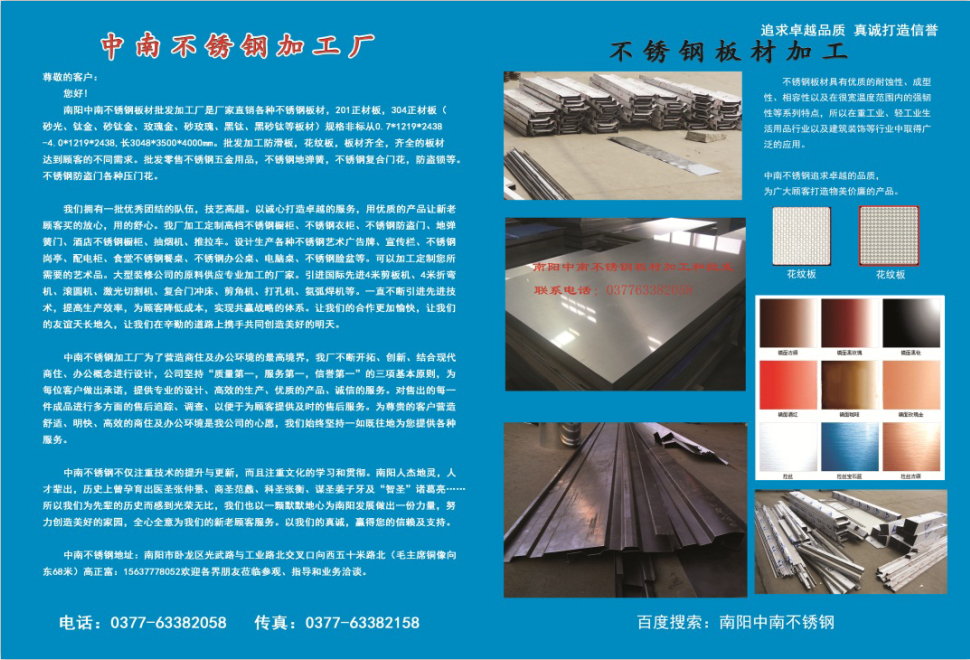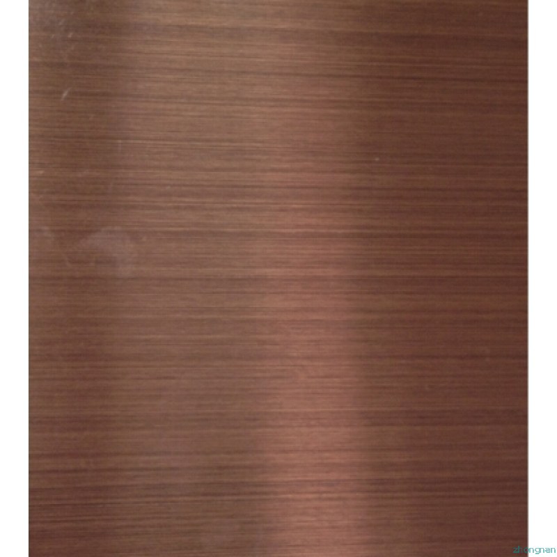 不銹鋼仿古銅板:不銹鋼仿古銅板 ,有紅銅,青銅,仿紅古銅,仿青古銅,亮光紅古銅,亮光青古銅,啞光紅古銅,壓光青古銅等,通過(guò)化學(xué)(或電化學(xué))處理,在不銹鋼表面形成一層高抗蝕性氧化膜,給不銹鋼著(zhù)上古銅色彩,不僅使其保持了不銹鋼原有的各種優(yōu)越性,而且使其耐蝕性能、耐老化性能、耐紫外線(xiàn)照射性能和外觀(guān)裝飾效果優(yōu)于普通不銹鋼。不銹鋼仿古銅板具有耐熱性:在沸水中浸漬28天,在200℃以下暴露五個(gè)星期,在250℃以下長(cháng)期暴露,加熱到400℃,膜層色澤均無(wú)明顯變化;耐磨性和抗刻劃性能:能隨在500g/cm2的壓強下,橡皮摩擦2000次以上不變色,用300g的鋼針刻劃不劃穿;加工性能:能承受常規的模壓加工、深拉延、彎曲加工以及加工硬化,進(jìn)行180℃彎曲試驗和8mm的杯突試驗后,氧化膜均完好!