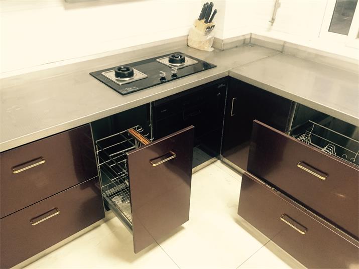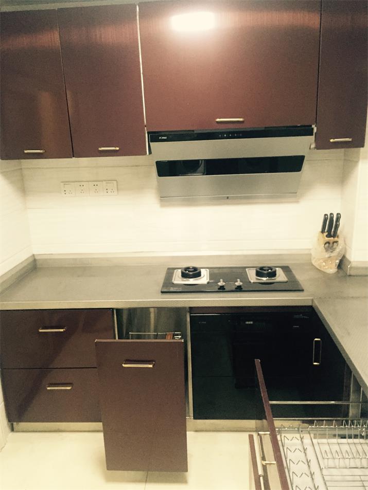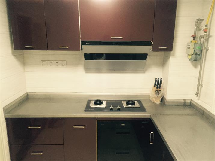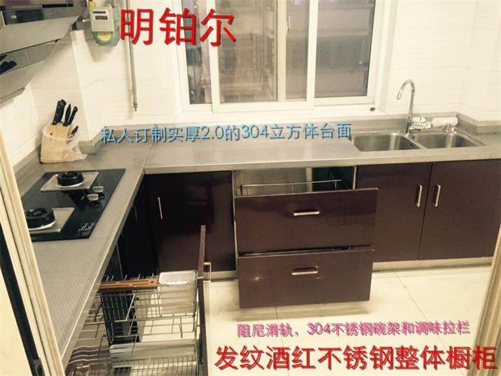 此套酒紅不銹鋼整體櫥柜,臺面板采用實(shí)厚2毫米304材質(zhì)??梢允褂?00年的不銹鋼整體櫥柜。
