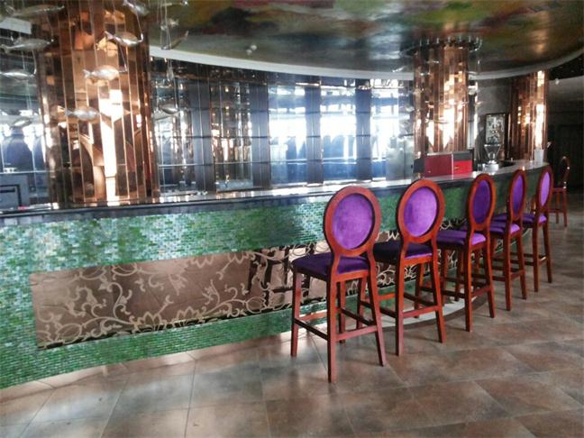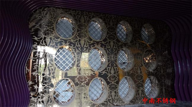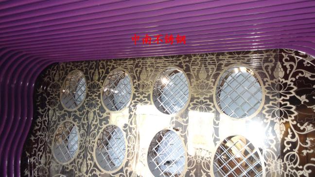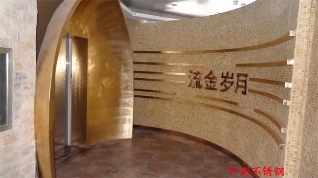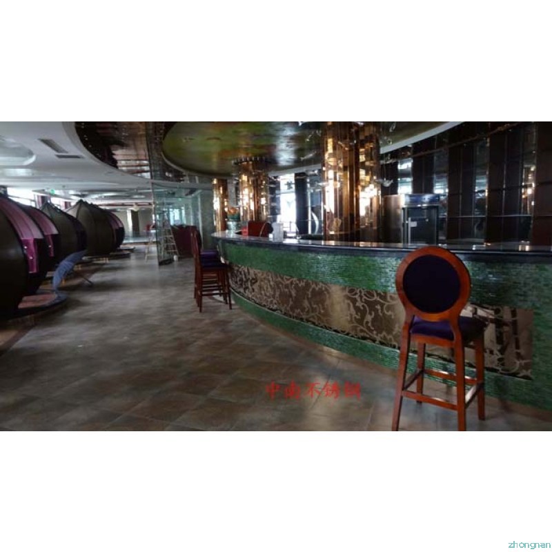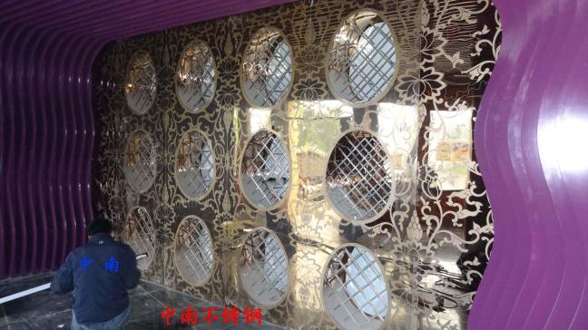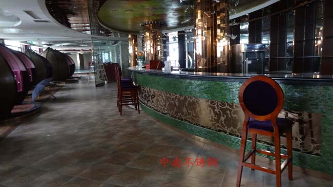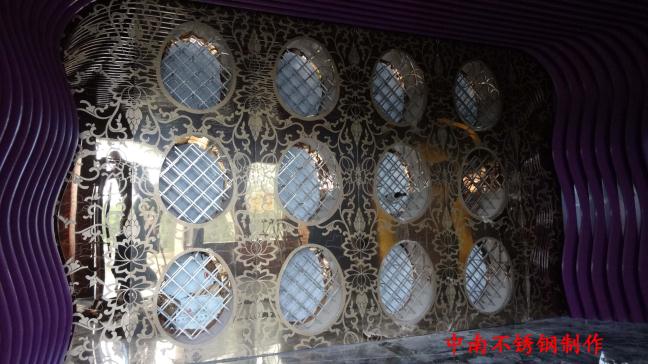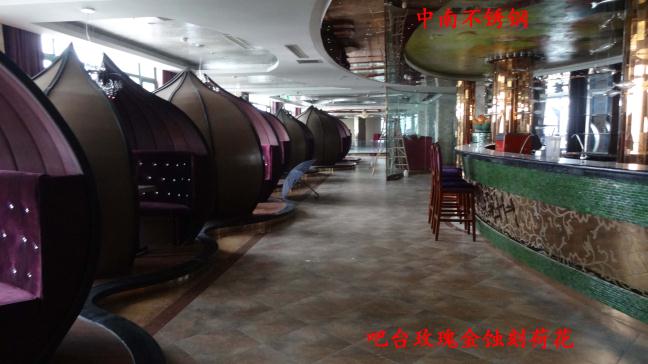 2012年,明鉑爾與荷花廣場(chǎng)流金歲月西餐廳,與北京星亞澤園裝飾工程公司合作。制作玫瑰加荷花蝕刻酒柜,不銹鋼藝術(shù)造型。