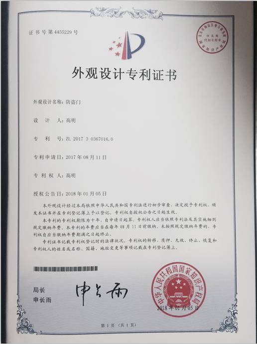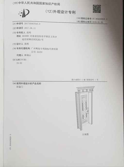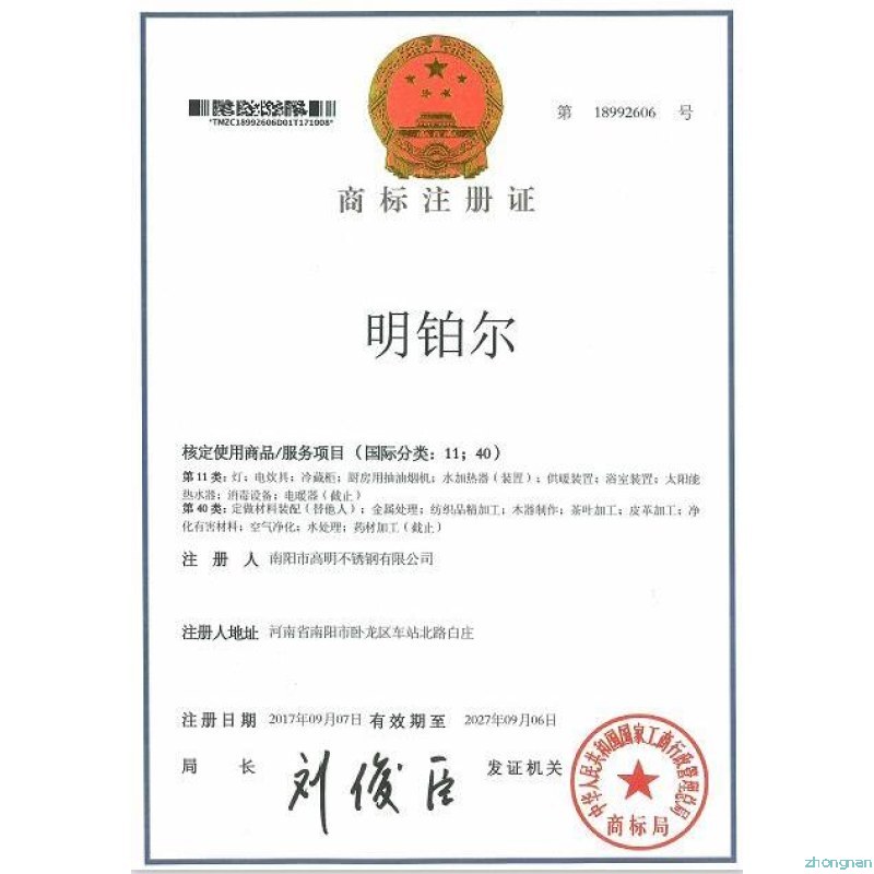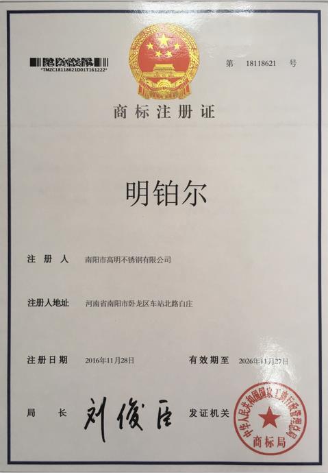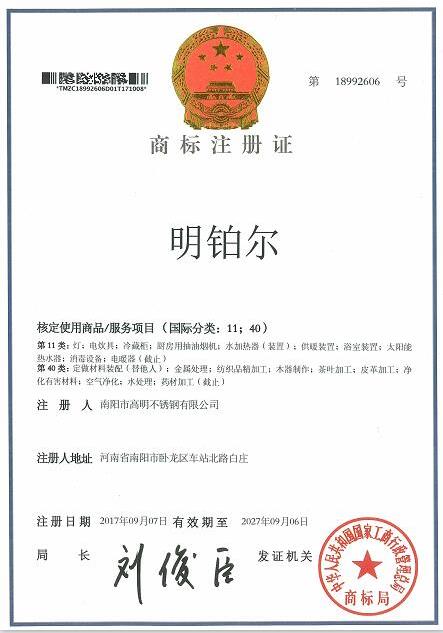南陽(yáng)明鉑爾?知識產(chǎn)權榮譽(yù)證